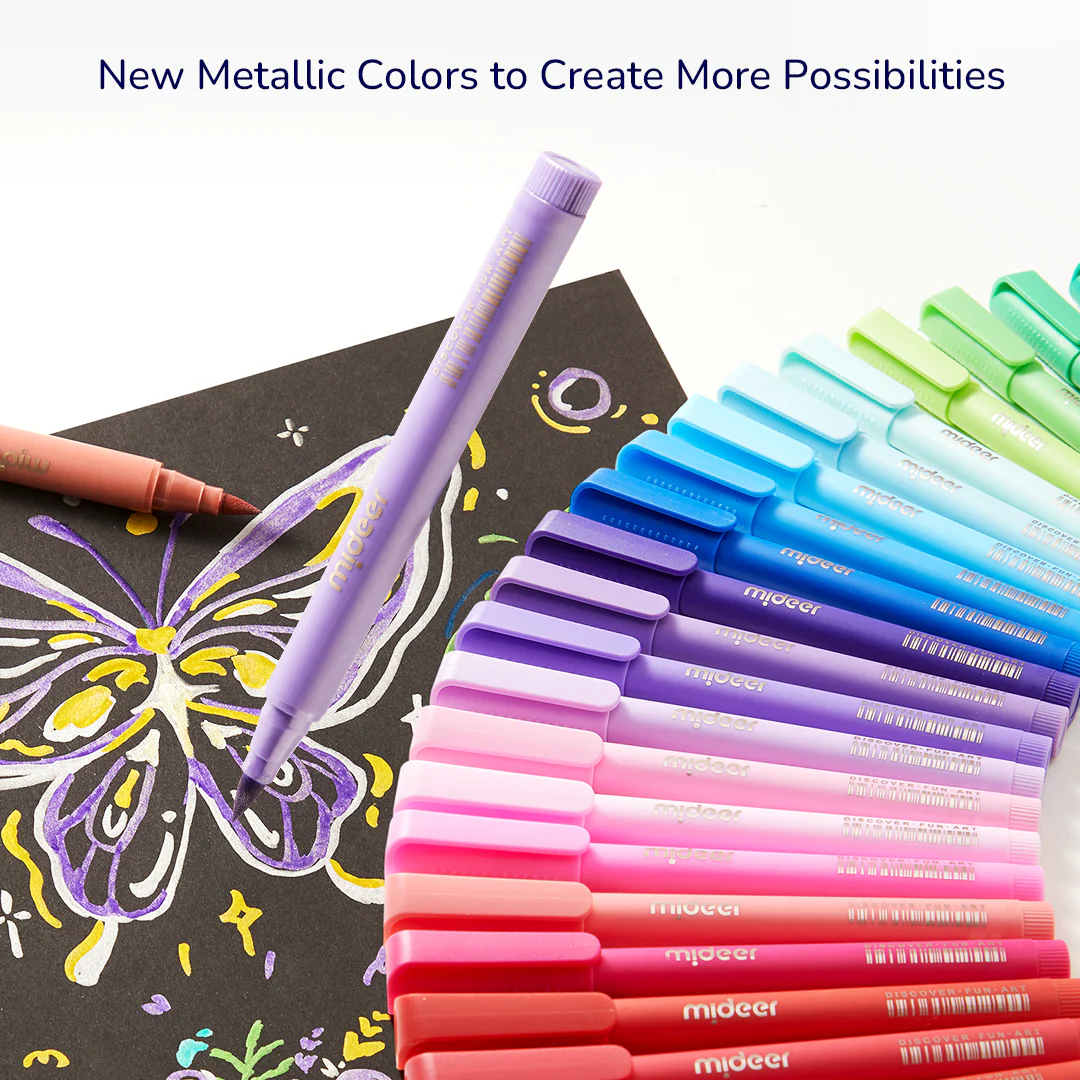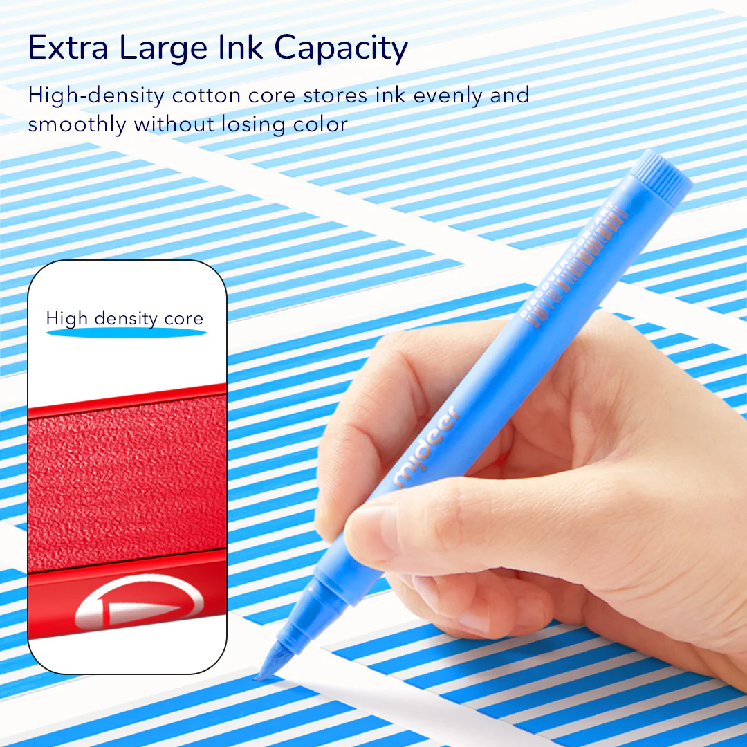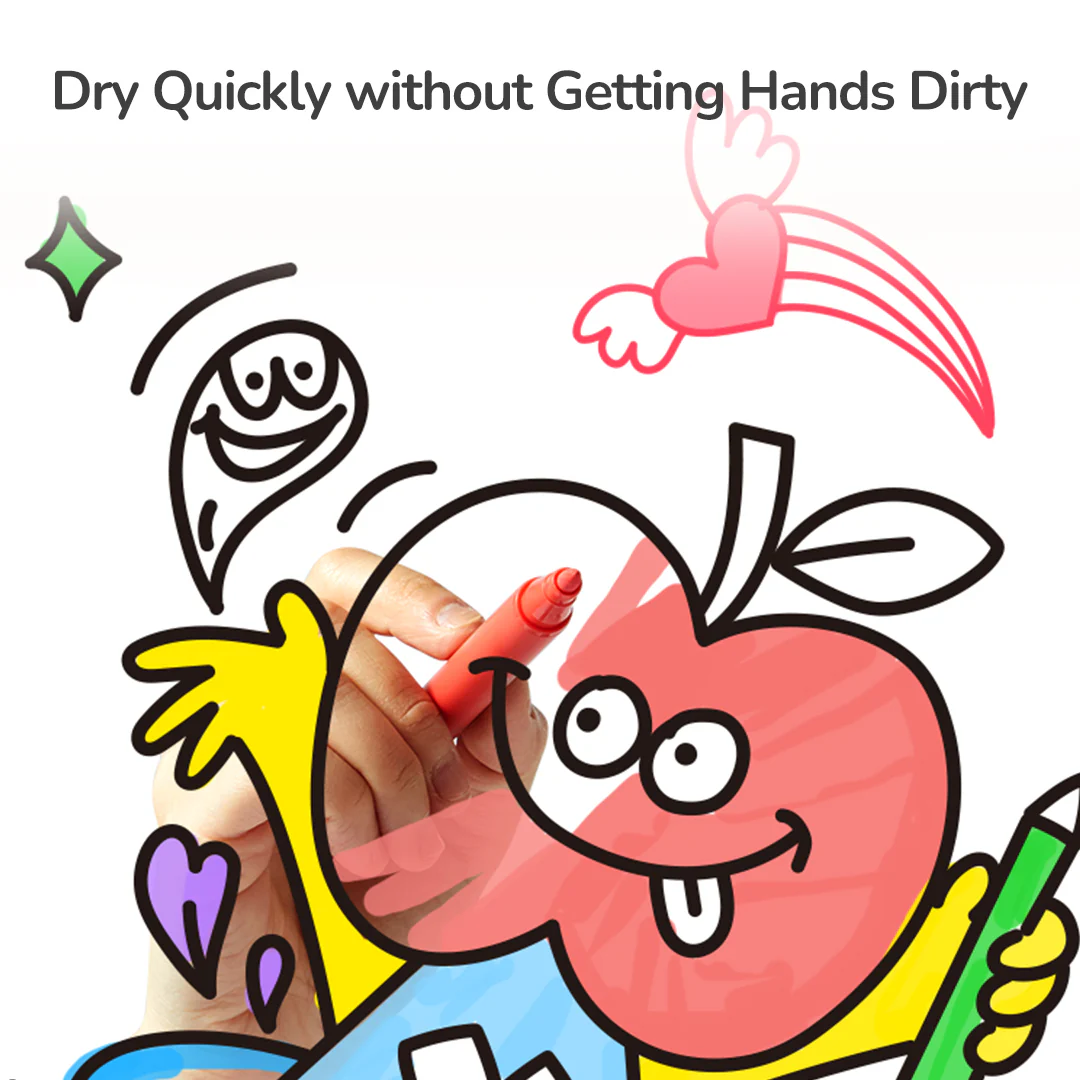 Malen ohne die Katastrophe des Jahrhunderts? Ja, das geht! Die weichen, pinselartigen Spitzen der Acrylmarker fühlen sich nicht nur angenehm an, sondern ermöglichen es den Kindern auch, mit verschiedenen Maltechniken zu experimentieren. Der Stift ahmt den Druck und die Flexibilität eines Pinsels nach und macht es einfach, präzise Striche zu ziehen, von dünnen Linien bis hin zu breiten Streifen.