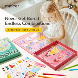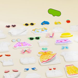 El libro para colorear y vestir permite crear hermosos atuendos utilizando notas adhesivas. Los pequeños diseñadores pueden crear prendas que serían apropiadas para pasarelas de moda de París. Al diseñar juntos bellos atuendos, podemos conocer mejor al niño y sus gustos. Crear personajes de acuerdo con lo que la imaginación infantil sugiere es un proceso único y valioso, lo que le permite expresarse.